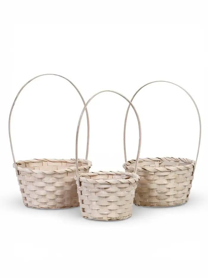 Набор корзин 3 шт 21х21х10 18х18х10 16х16х10 см ручка h=26/24/22см белый