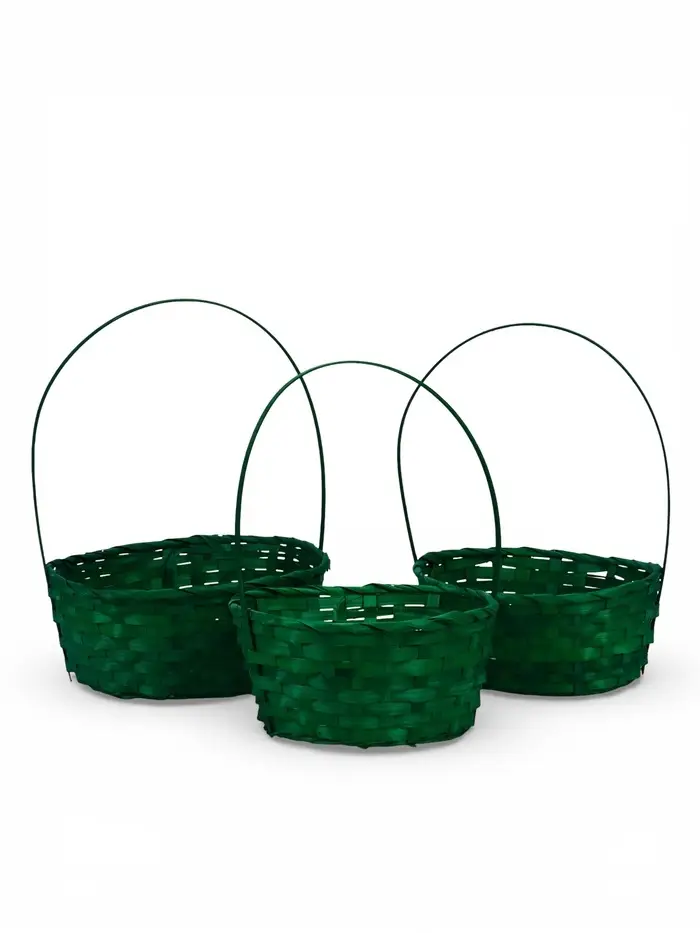 Набор корзин 3 шт 22х18x10 24х19x10 27х21x10 см ручка h=24/26/28 см зеленый