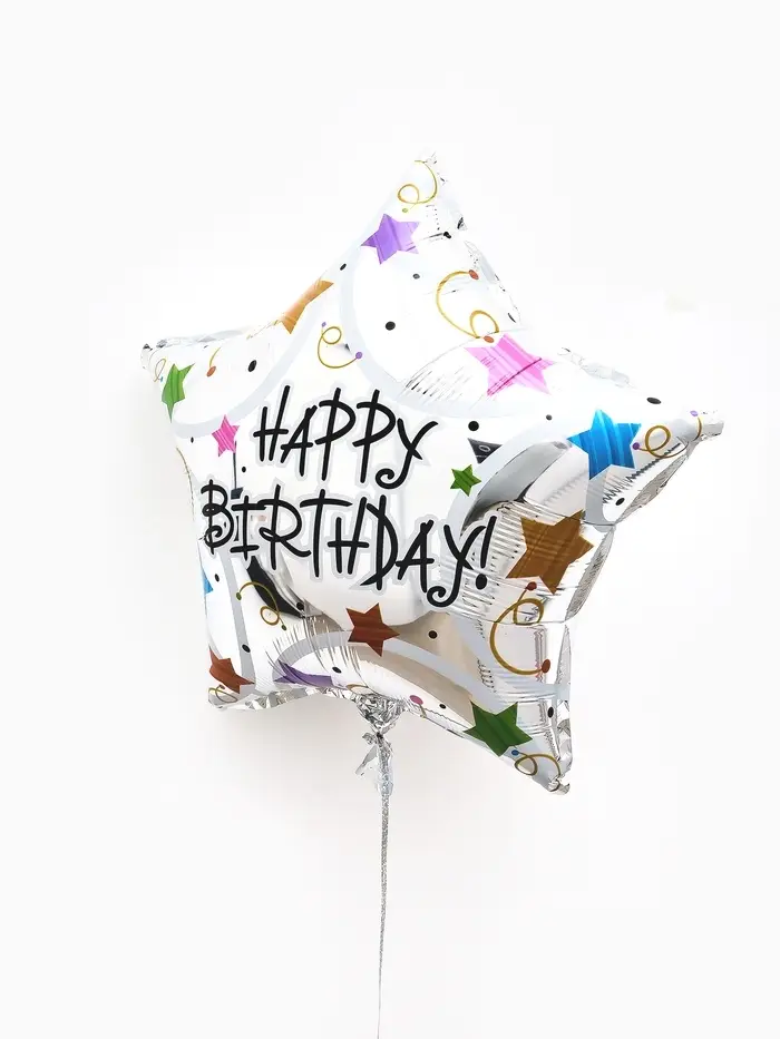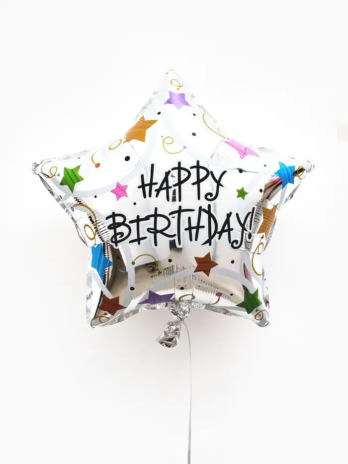 Воздушные шары фольгированные 18" звезда "С днем рождения, металлик" набор 5 штук