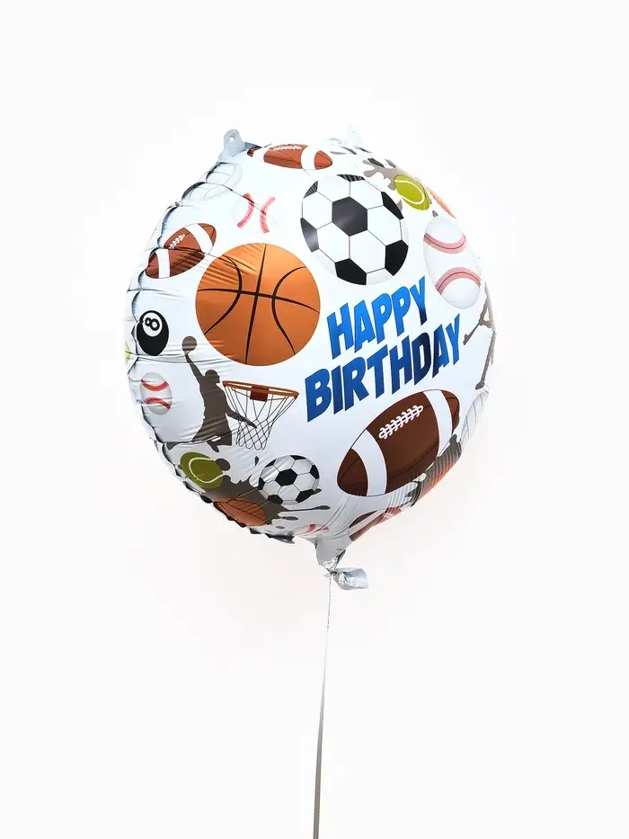 Воздушные шары фольгированные 17" круг "С днем рождения, спорт" набор 5 штук