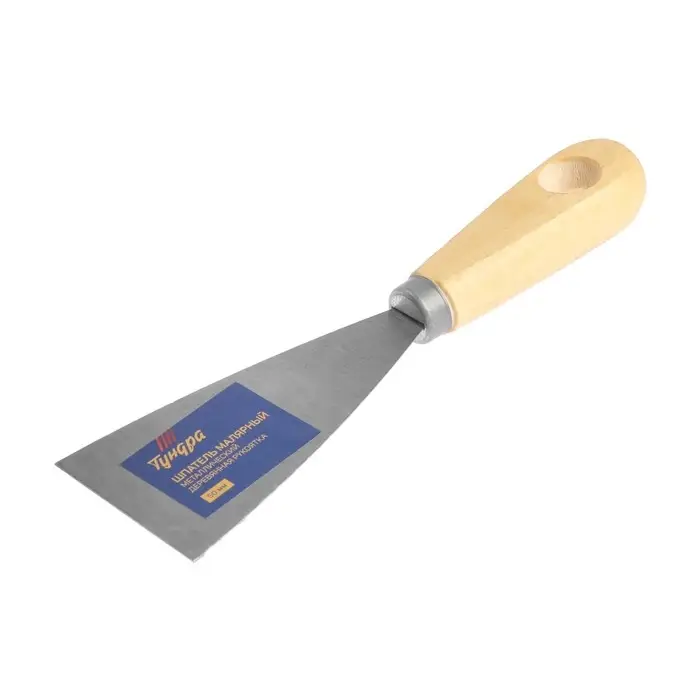 Шпатель малярный ТУНДРА, металлический, деревянная рукоятка, 50 мм