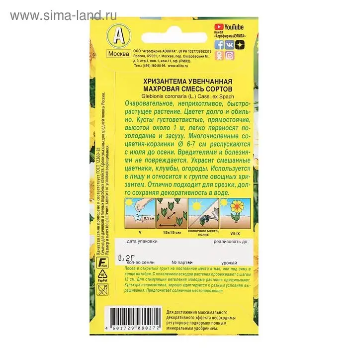Семена цветов Хризантема увенчанная Махровая, смесь окрасок, О, 0,2 г