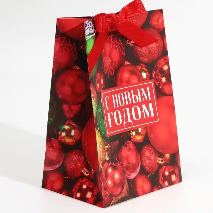 Пакет подарочный с лентой «С Новым годом», 13 х 19 х 9 см