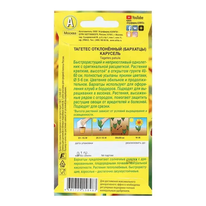 Семена Цветов Бархатцы «Карусель», отклоненные, 0.1 г, «АЭЛИТА»