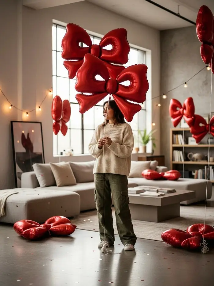 Воздушный шар фольгированный 50" "Бант" цвет красный матовый