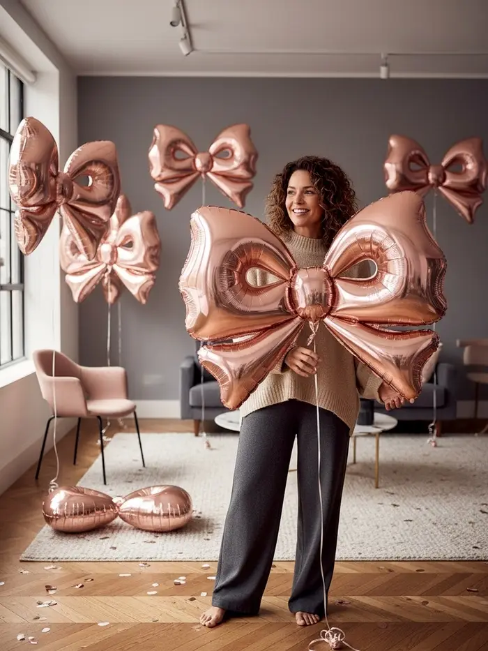 Воздушный шар фольгированный 50" "Бант" цвет розовое-золото