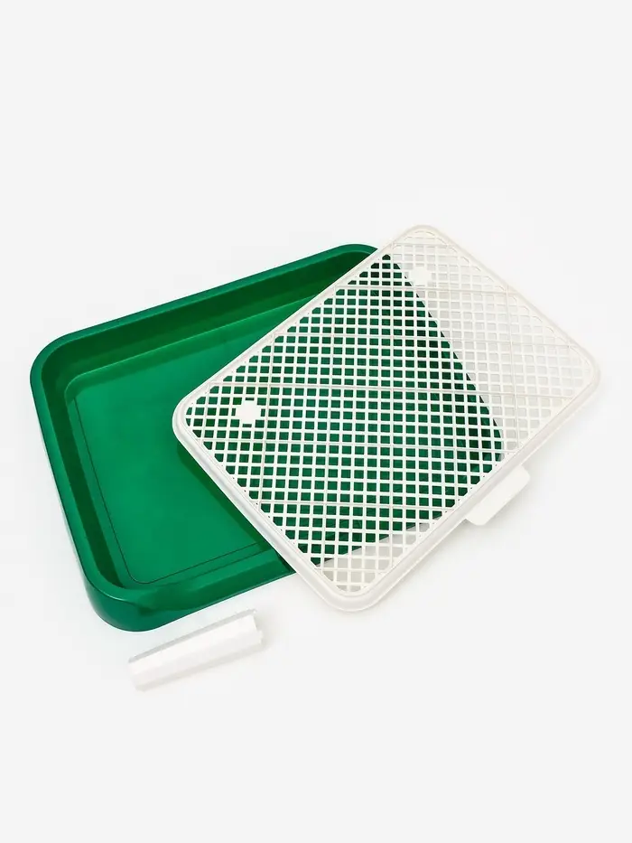 Туалет для собак, 46.5×36×5.5 см, со съёмной решеткой и столбиком, зелёный