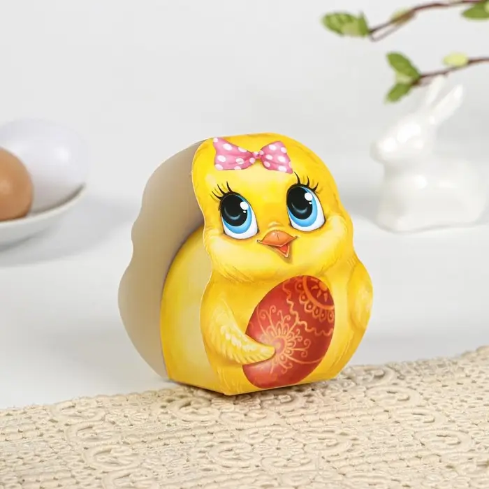 Пасхальный декор - подарочная коробочка. Положите внутрь яйцо или милый презент, чтобы порадовать своих близких. Продаётся в разобранном виде, но вы легко сможете собрать коробочку, согнув заготовку по линиям.