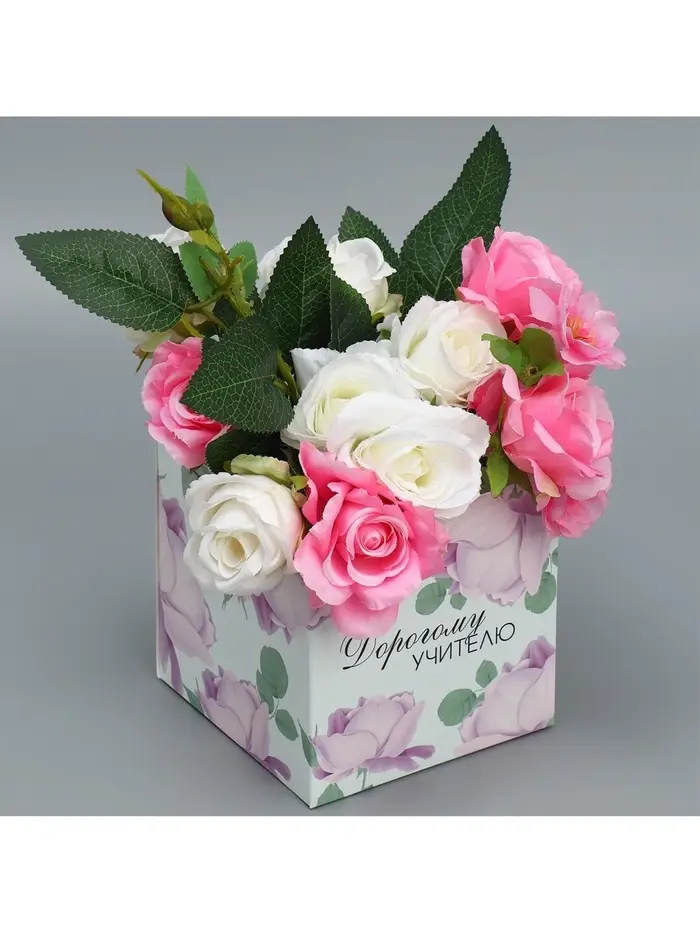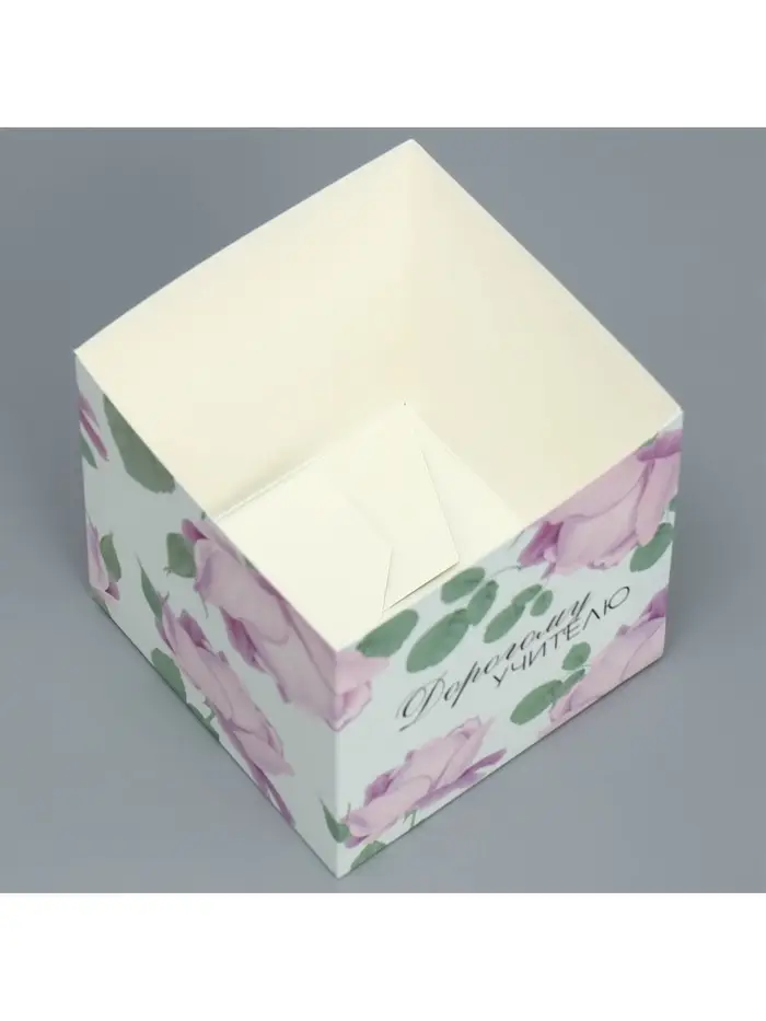 Коробка подарочная для цветов с PVC крышкой, упаковка, «Учителю», 12 х 12 х 12 см