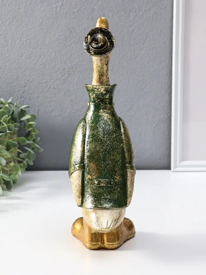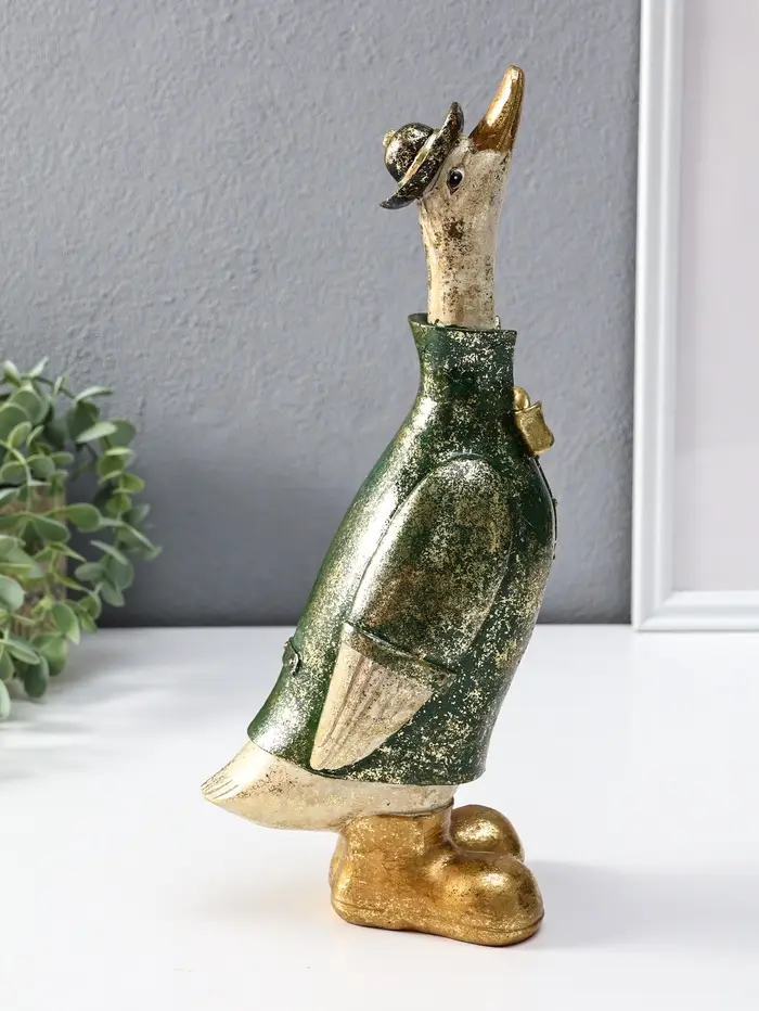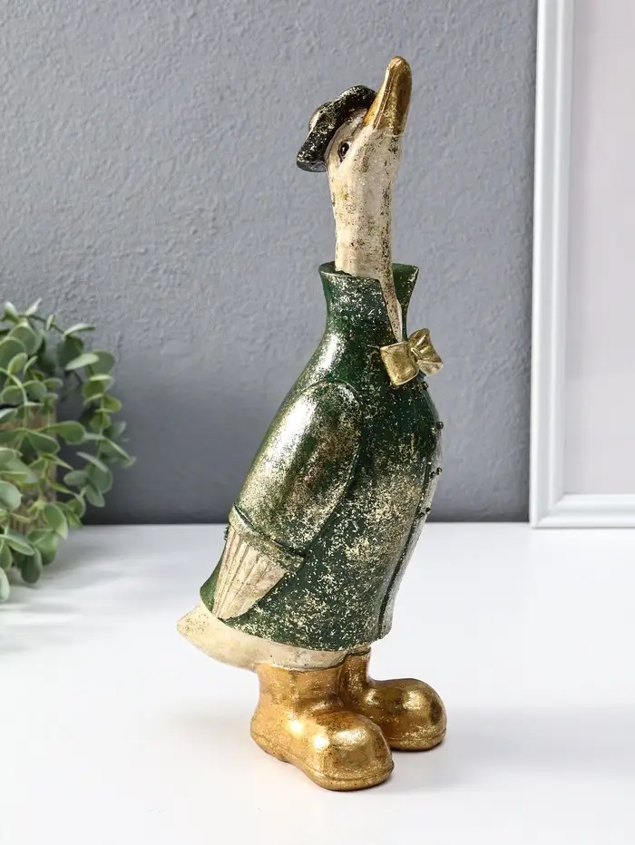 Сувенир полистоун "Гусь в шляпе и зелёном пальто" 9,5х13х30 см