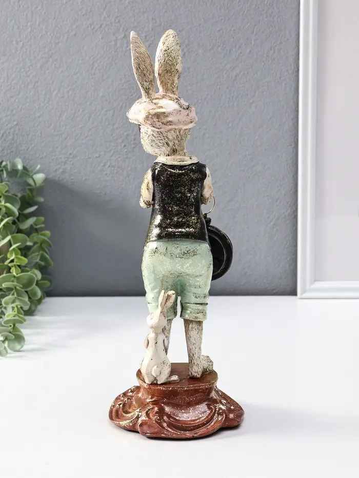 Сувенир полистоун "Зайчик в кепке с часами" 12,5х12,5х35 см