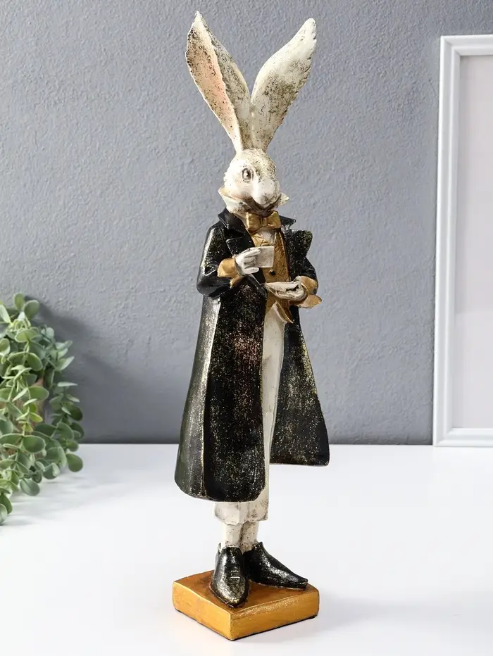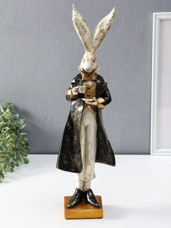 Сувенир полистоун "Заяц с чашкой чая" 13,5х11х46,5 см