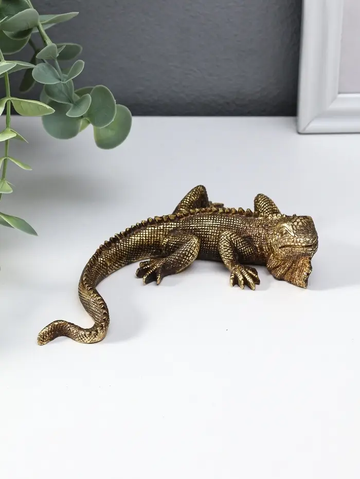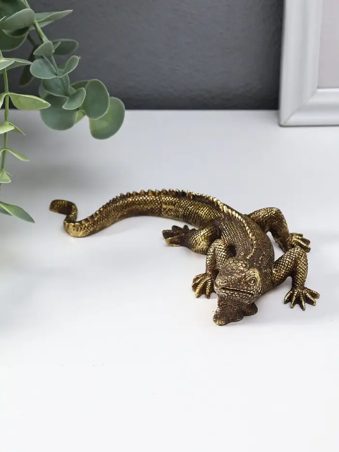Сувенир полистоун "Игуана" золото 15,5х11х3,2 см