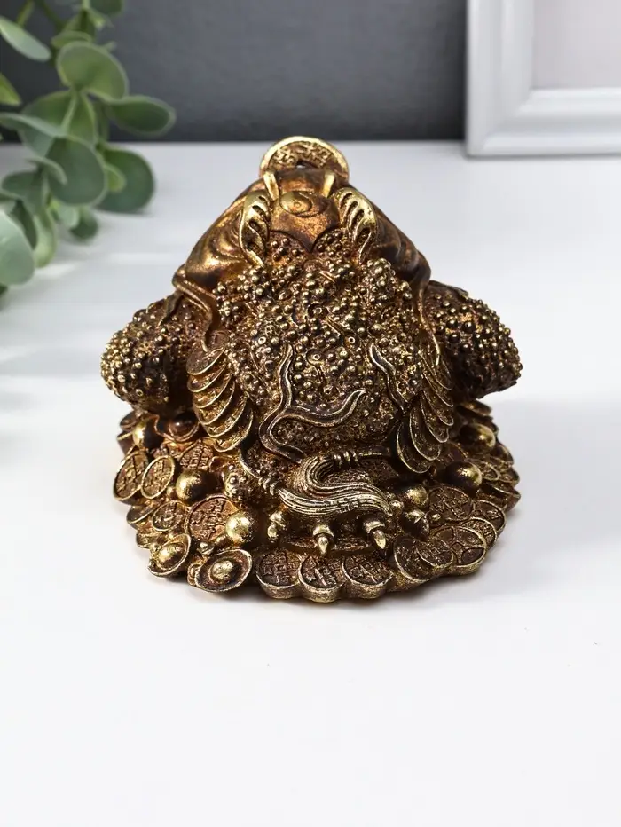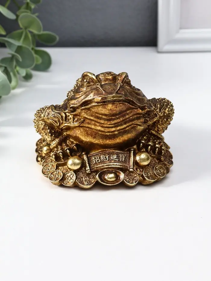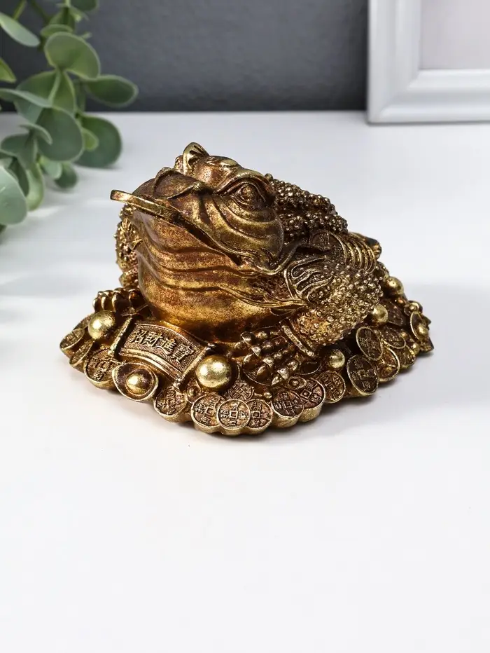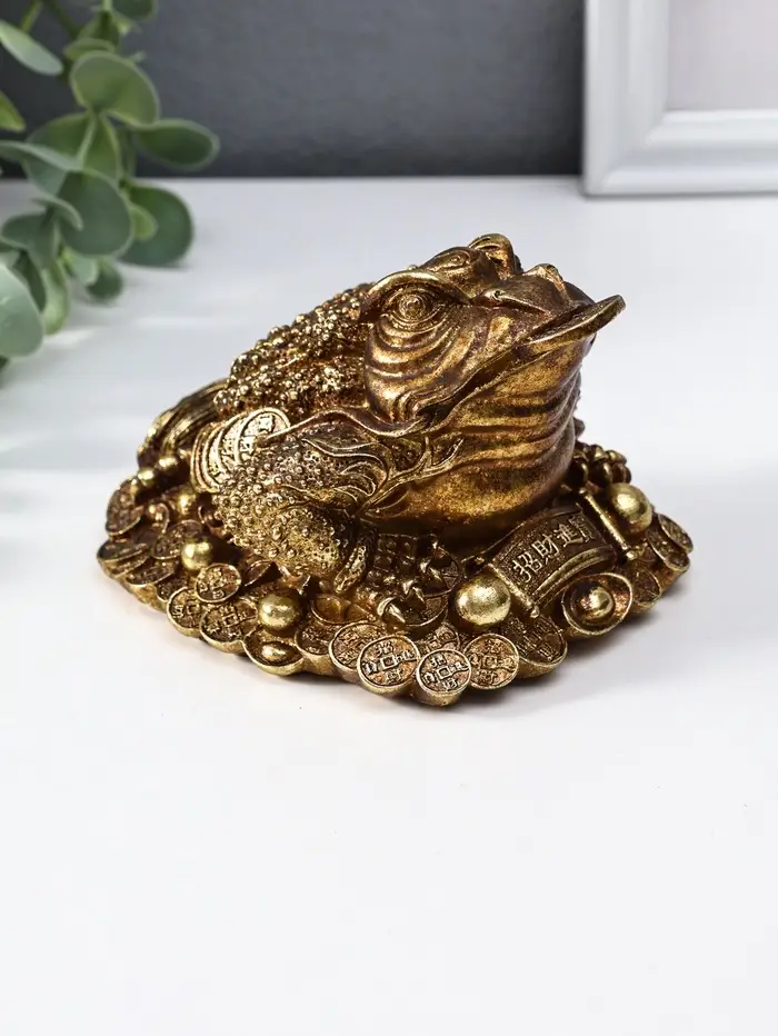 Нэцкэ полистоун "Денежная жаба с золотой монетой" 12х10,5х7,7 см