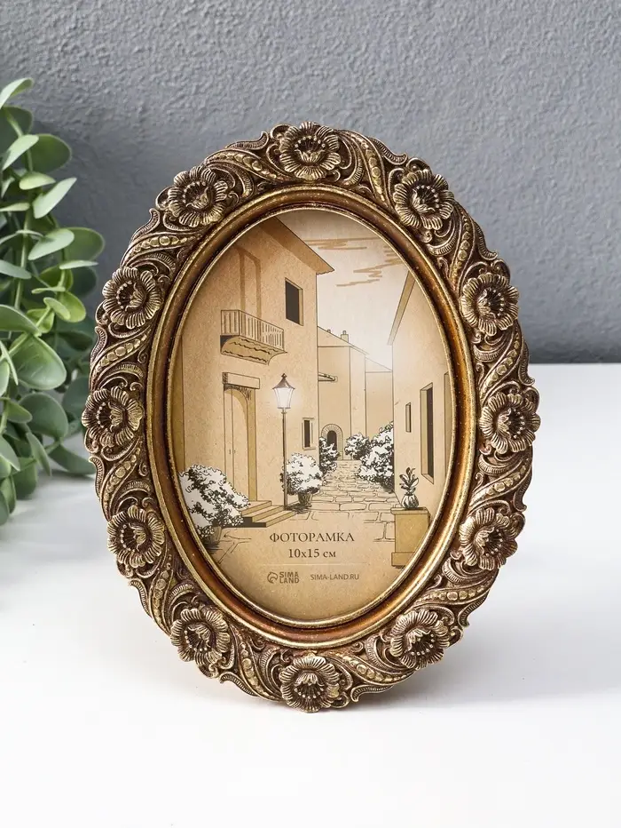 Фоторамка полистоун 10х15 см "Винтажные цветы" тёмное золото 15х1,5х20 см