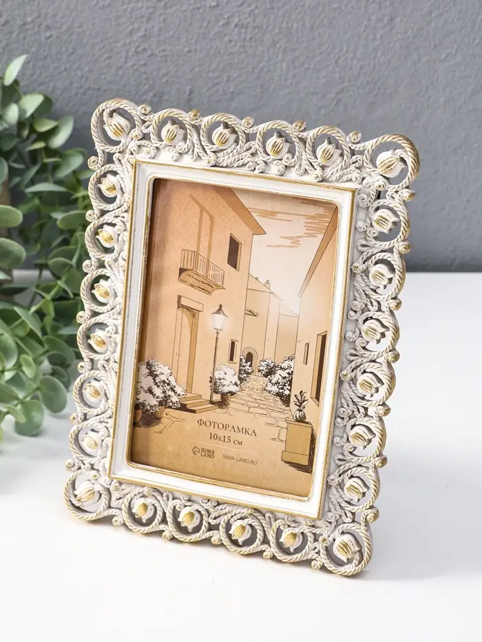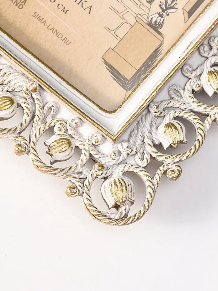 Фоторамка полистоун 10х15 см "Тюльпаны и жгуты" белая с золотом 15,5х1,5х20,5 см