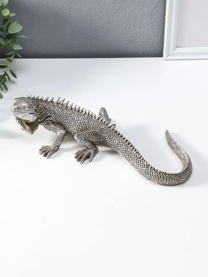 Сувенир полистоун "Игуана" чернённое серебро 25,2х12,2х7 см