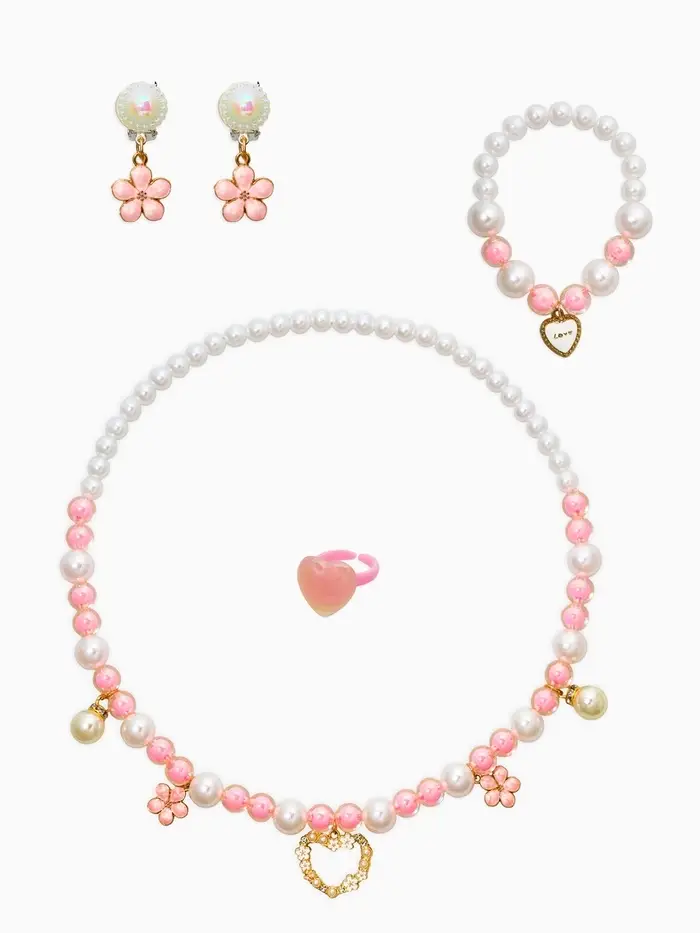 Набор детских украшений «Выбражулька. Нежность», 4 предмета: клипсы, кольцо, бусы, браслет, розовый, белый
