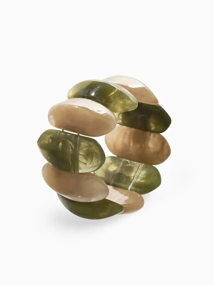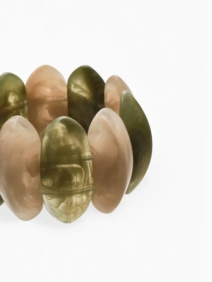 Браслет манжет акрил "Тренд", цвет бежево-злёный