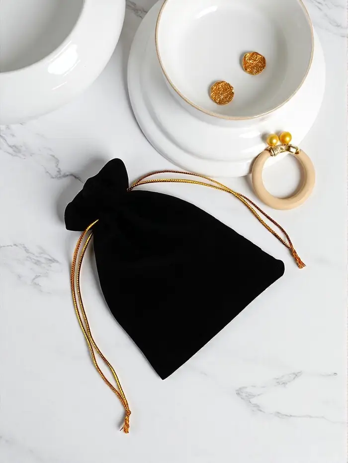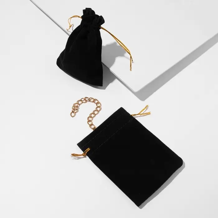 Набор мешочков бархатных 50 шт., 9*12, цвет чёрный с золотым шнурком (710783)