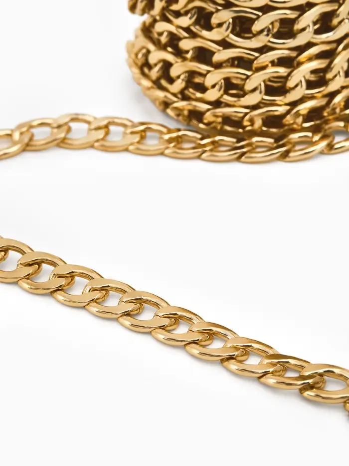 Цепочка с крупными звеньями без карабина на бобине, 13х8,5 мм, L=3м, цвет золото