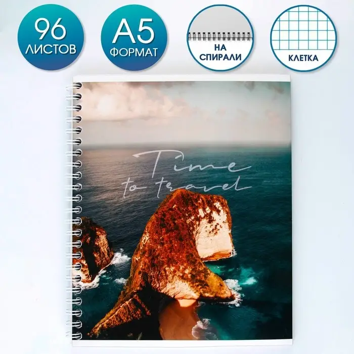 Тетрадь в клетку, 96 л., А5, на спирали, блок №2, Time to trevel