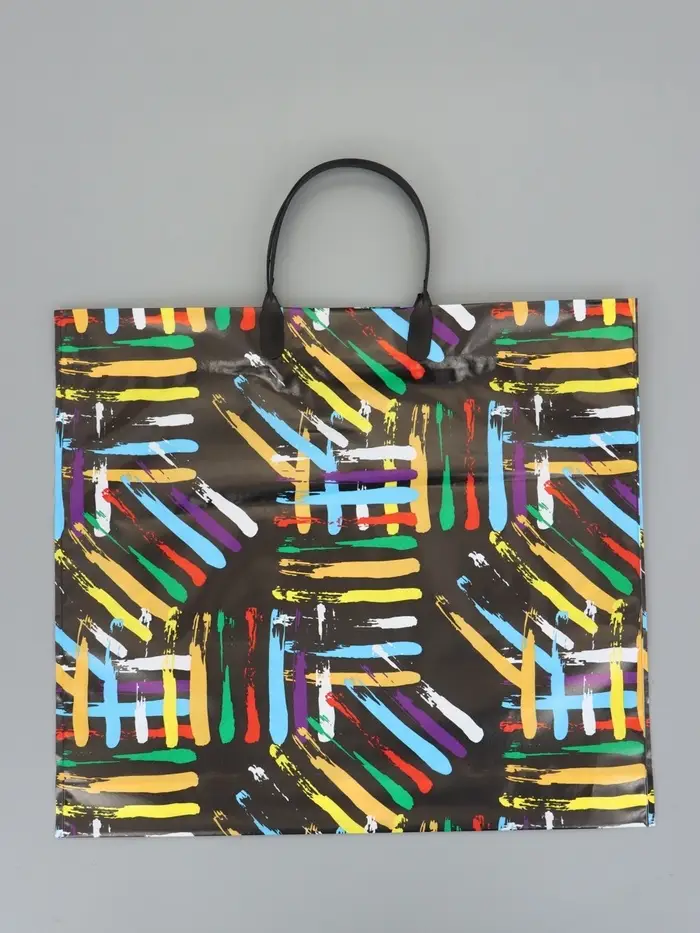 Пакет "Цветные линии", полиэтиленовый с пластиковой ручкой, 38 х 34 + 3 см, 90 мкм