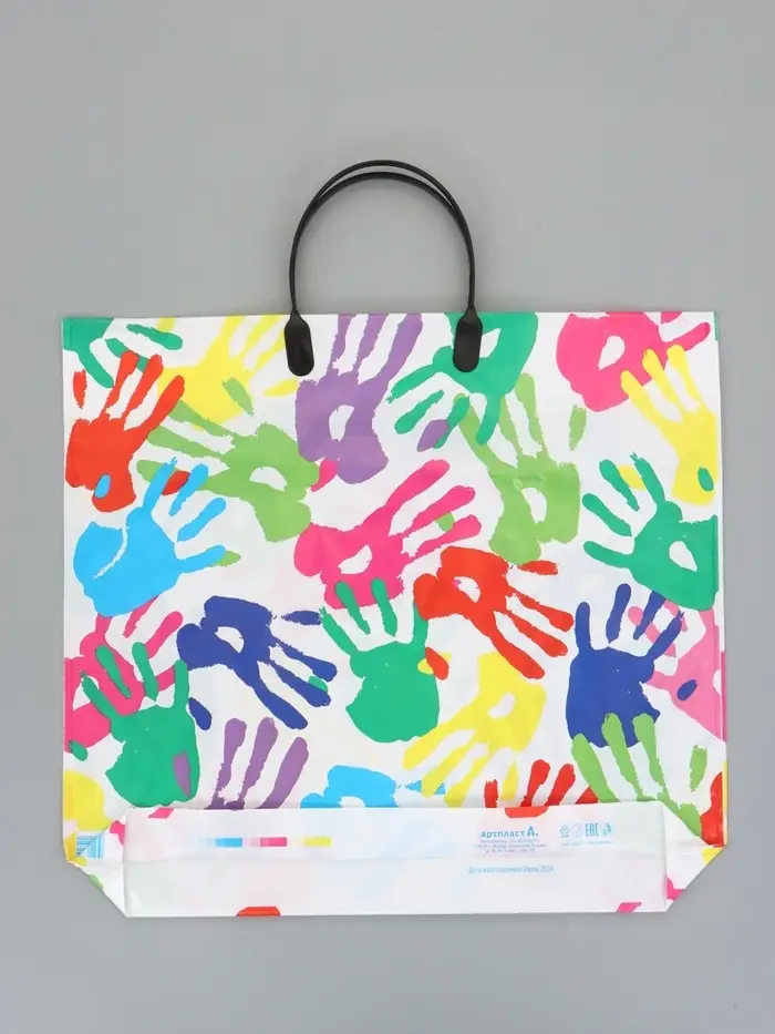 Пакет "Ладошки", полиэтиленовый с пластиковой ручкой, 38 х 34 + 3 см, 90 мкм