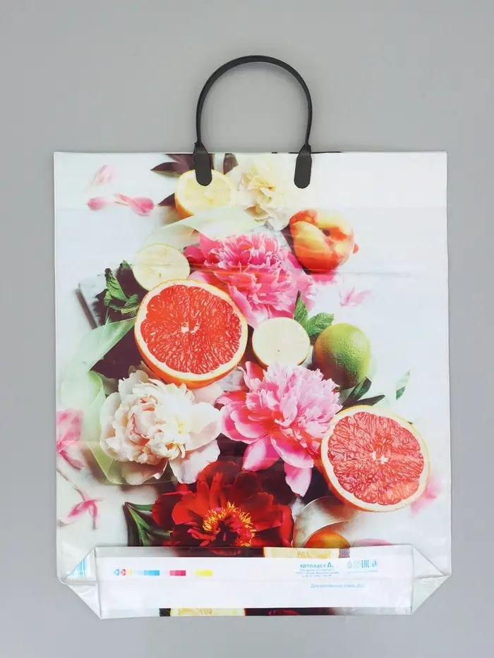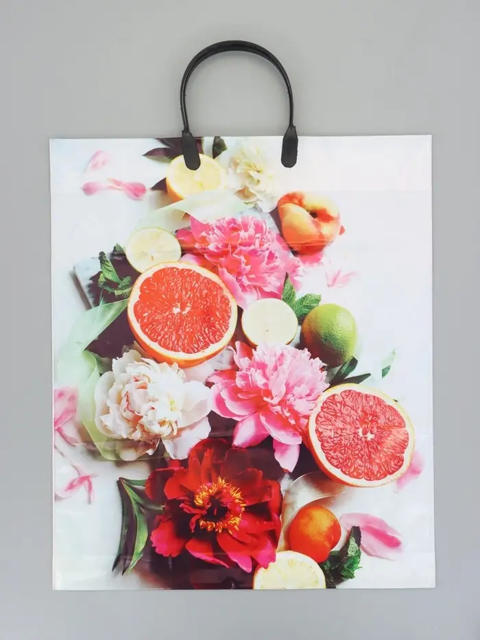Пакет "Летний цитрус", полиэтиленовый с пластиковой ручкой, 38 х 45 + 3 см, 90 мкм