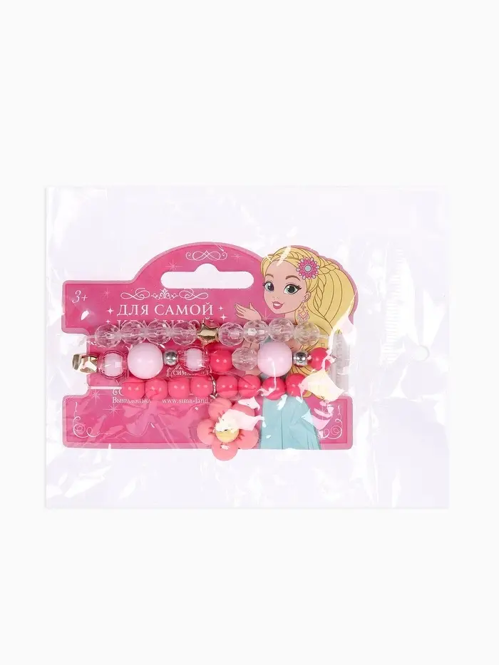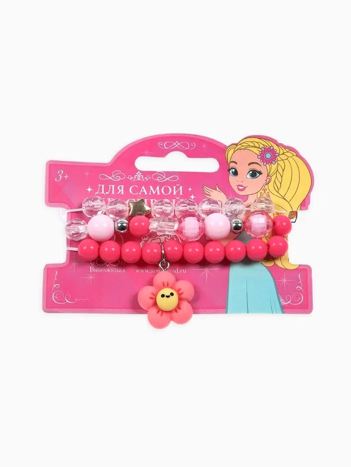 Набор браслетов детский Выбражулька «Цветок» 3 шт. d=6 см. бело-розовый