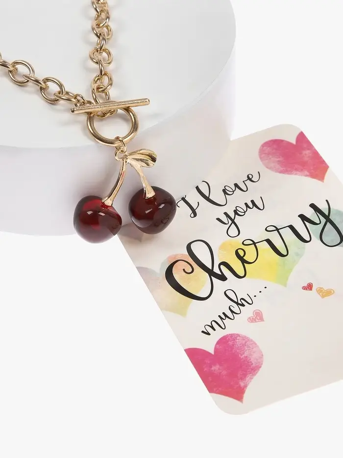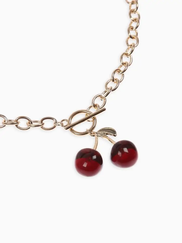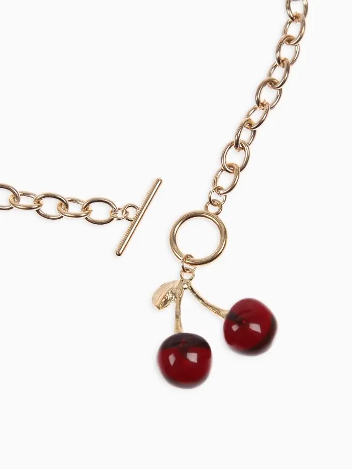 Кулон-цепь крупная "Вишня", цвет красный в золоте 40+удл