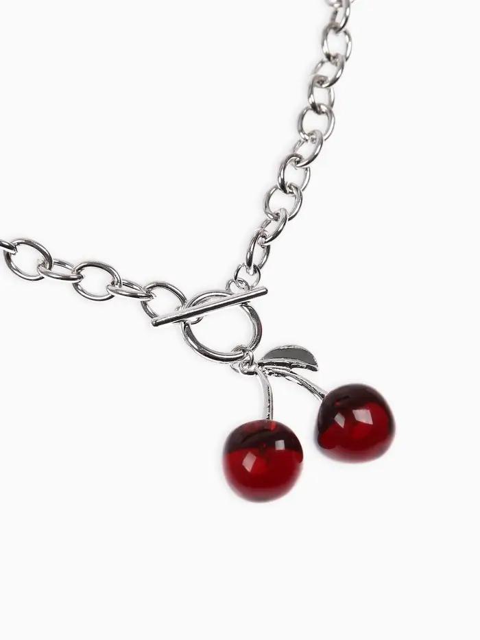 Кулон-цепь крупная "Вишня", цвет красный в серебре 40+удл