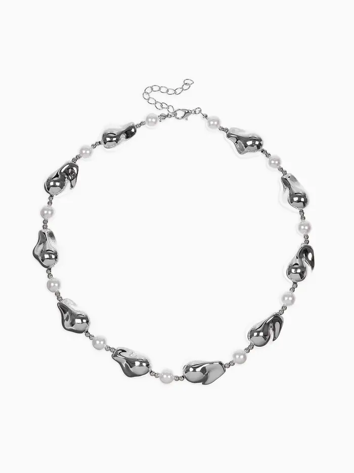 Бусы "Жемчуг Борокко", цвет белый в серебре 40+удл