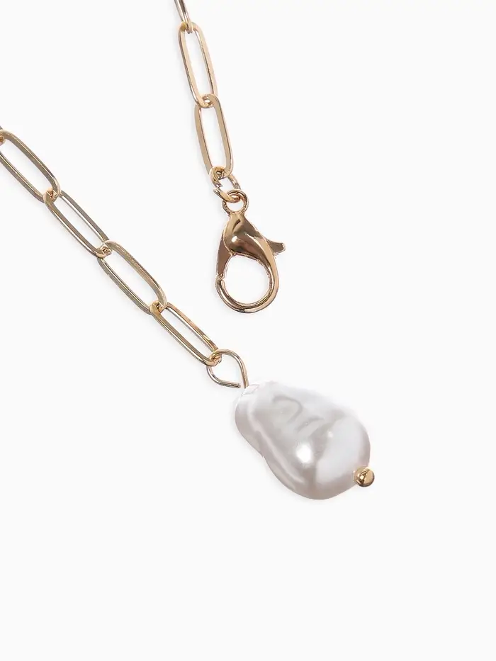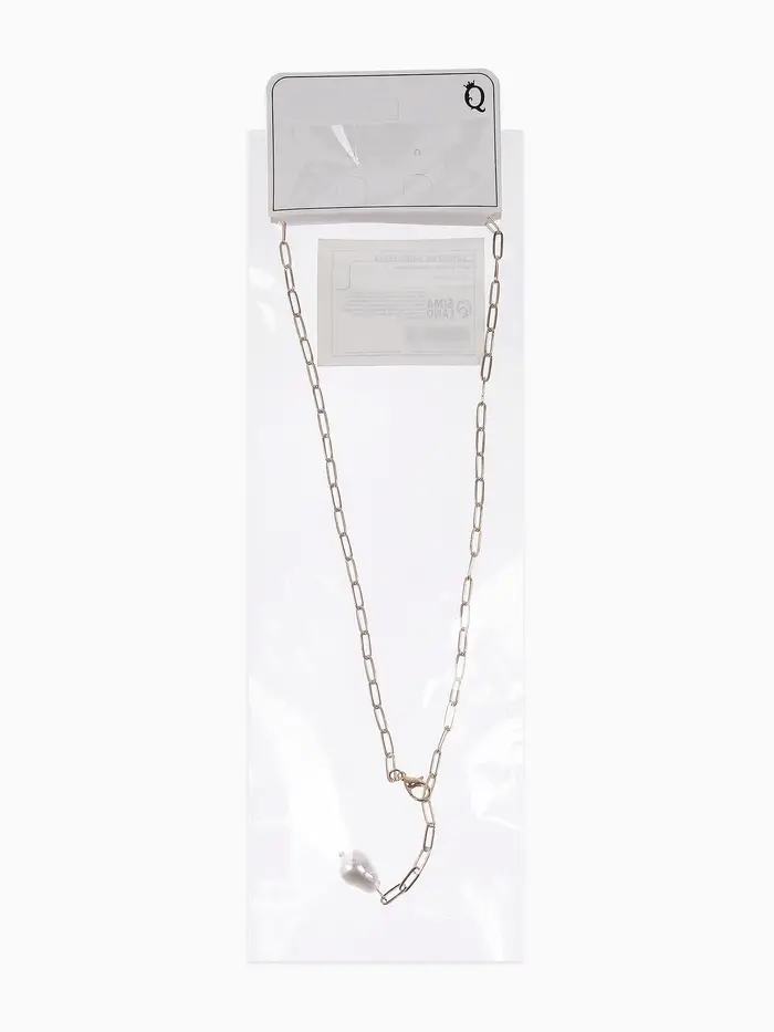 Цепь с бусиной "Жемчужина", вытянутое звено, цвет белый в золоте