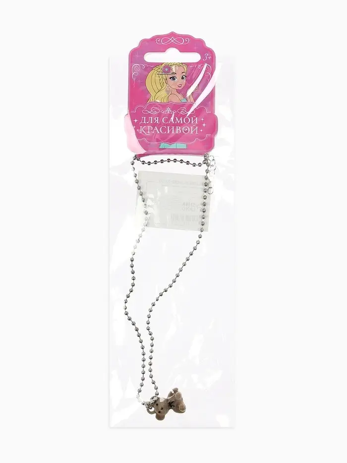Кулон детский «Выбражулька. Мишка», 40 см, бежевый в серебре