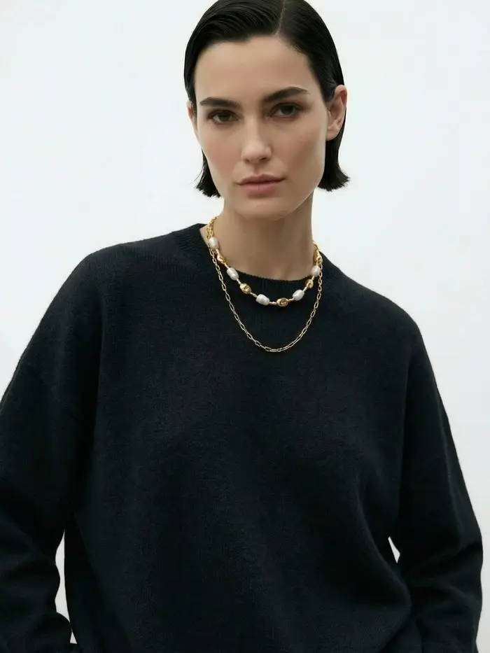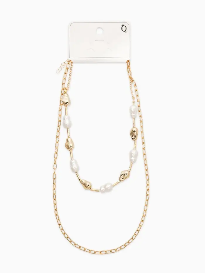 Колье "Жемчуг" борокко, цепь, удлиненное, 2 яруса, цвет белый в золоте