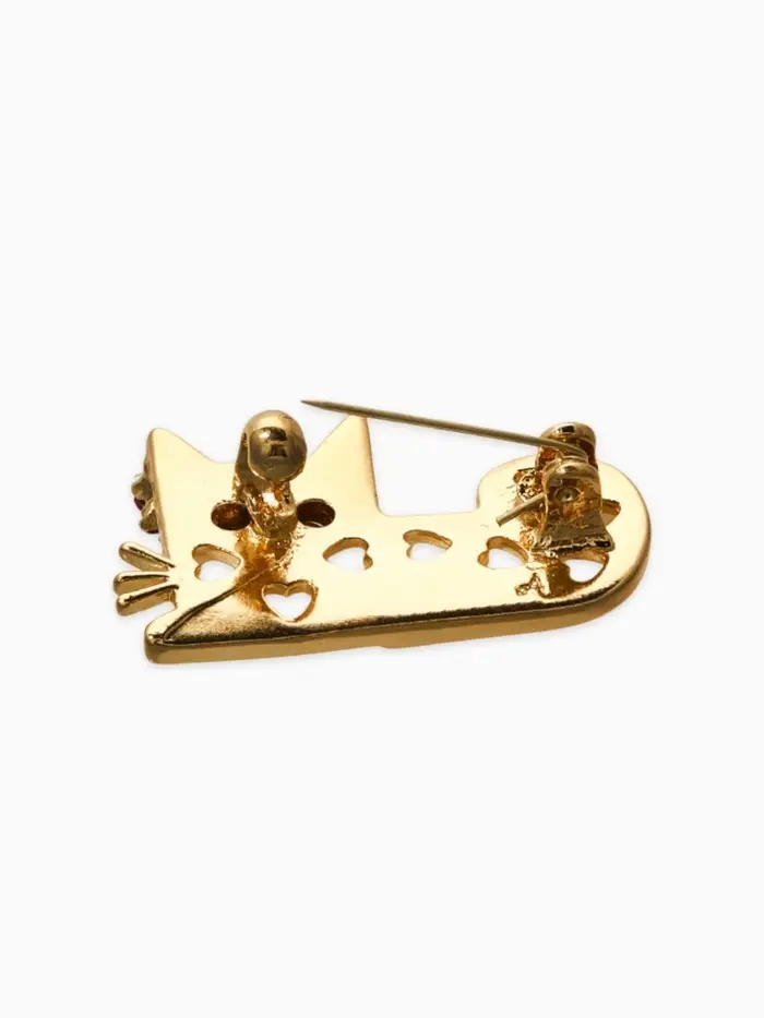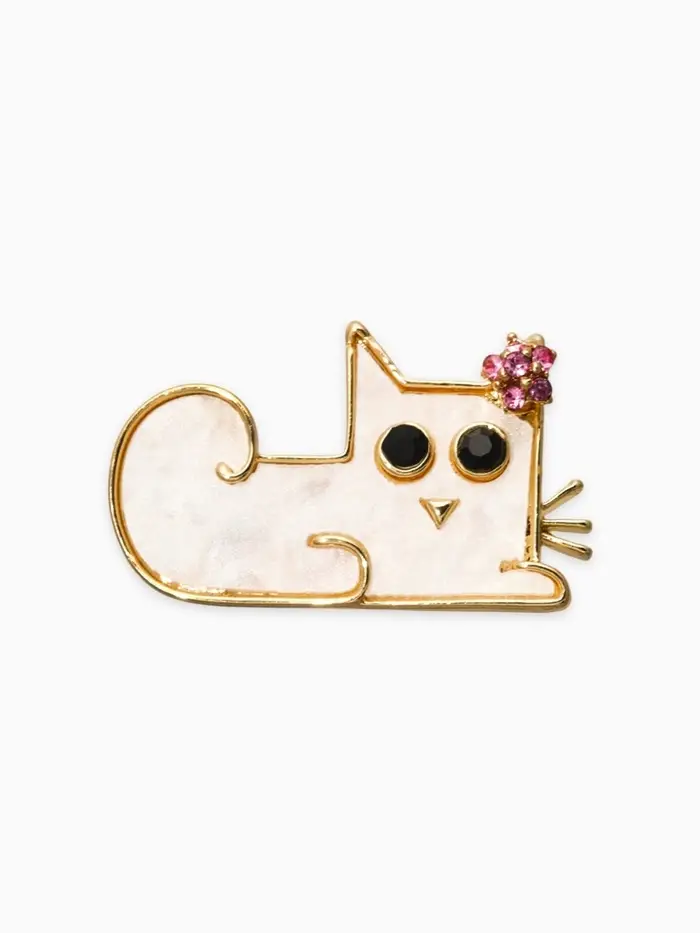 Брошь перламутровый "Котёнок" с цветочком, цвет белый в золоте