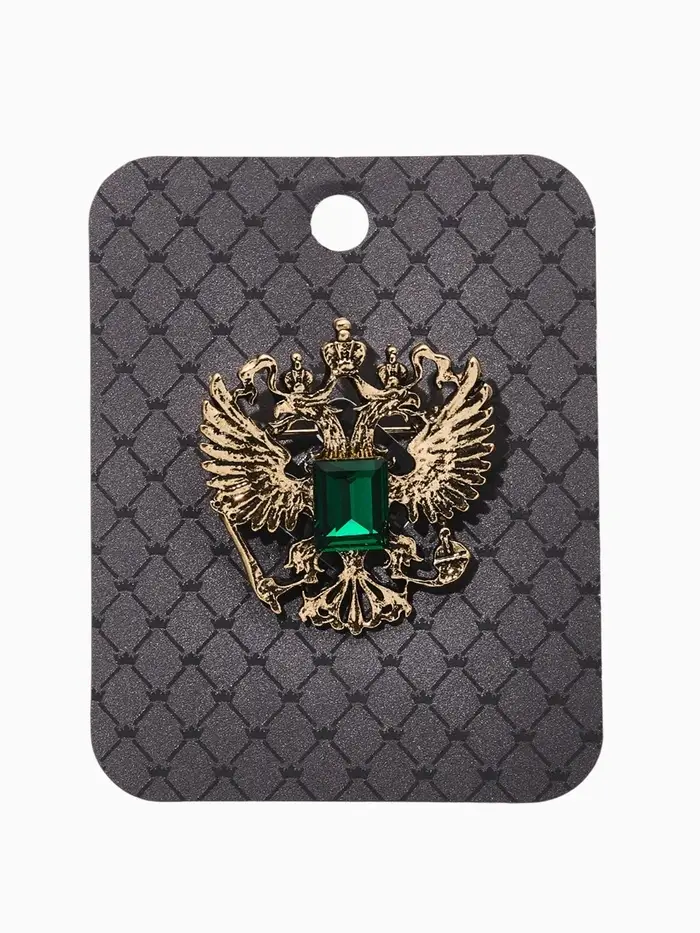Брошь «Герб Российской Федерации», цвет зелёный в чернёном золоте