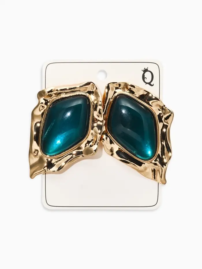 Серьги акрил "Ромб ажур", цвет морской в золоте