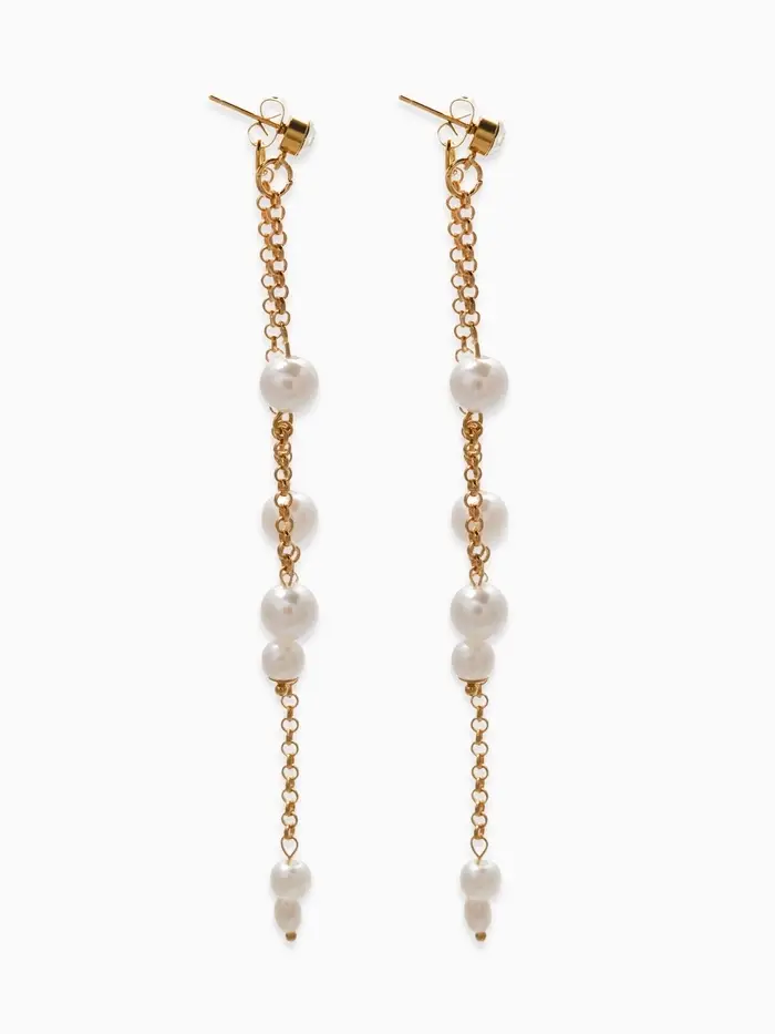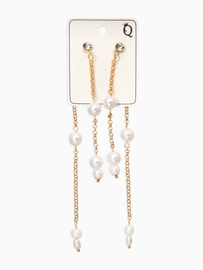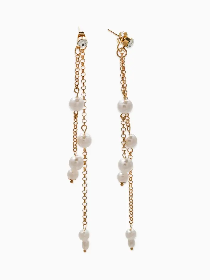 Серьги жемчуг "Цепочки" двойные, цвет белый в золоте