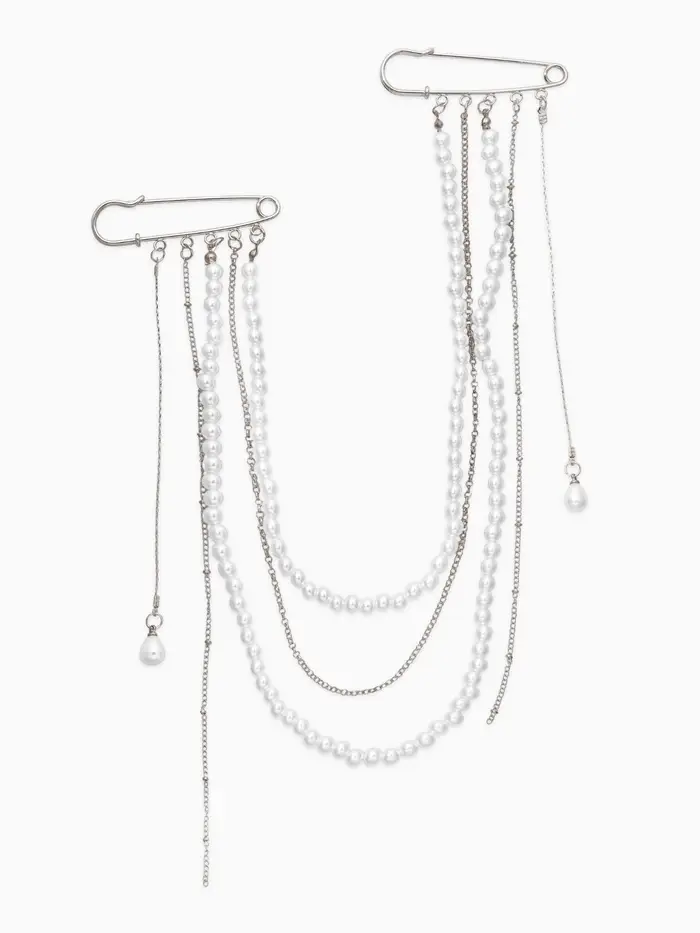 Булавки "Аксельбант", жемчуг, цвет белый в серебре