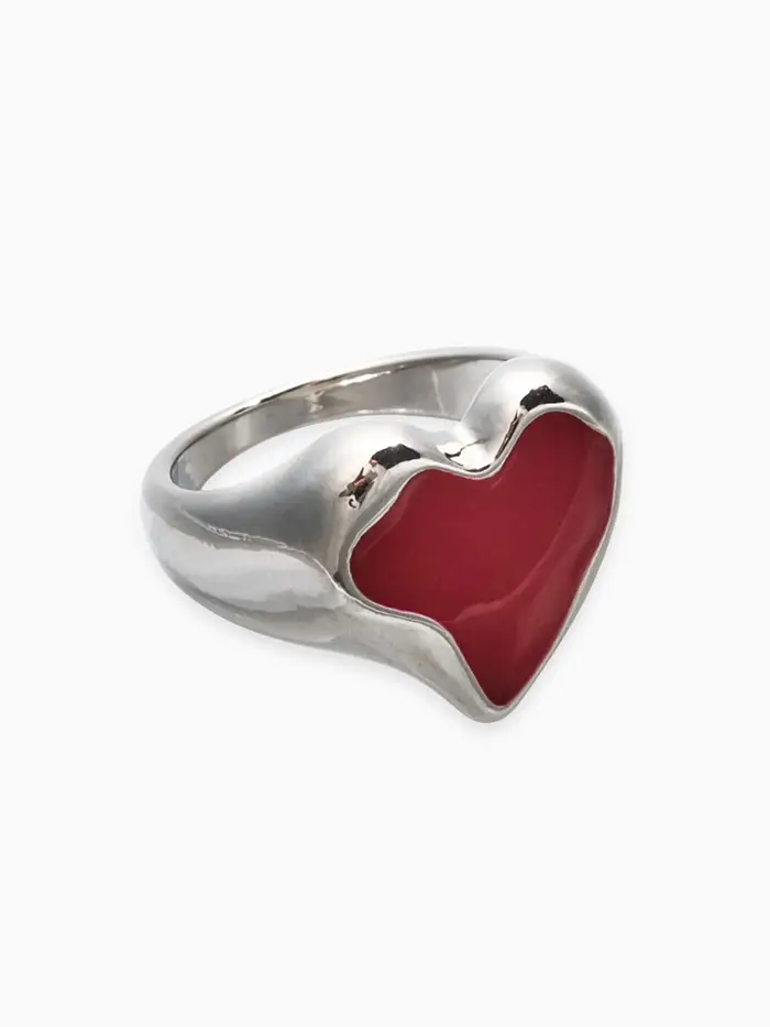 Кольцо "Сердце" корейский стиль, размер 17, цвет бордовый в серебре