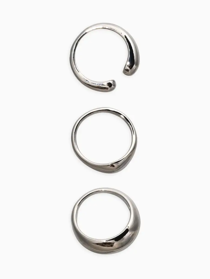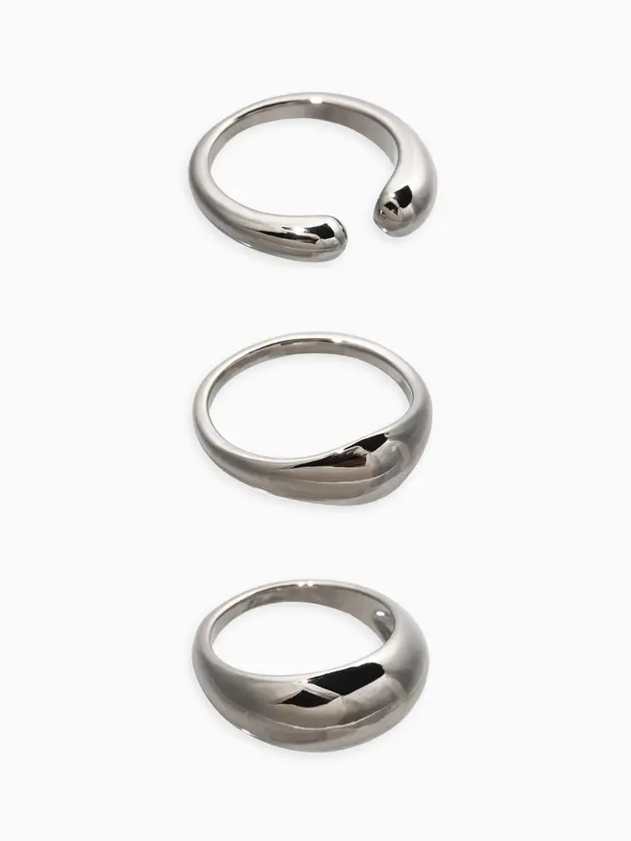 Набор колец 3 шт "Новый стиль" минимализ линий, размер МИКС, цвет серебро
