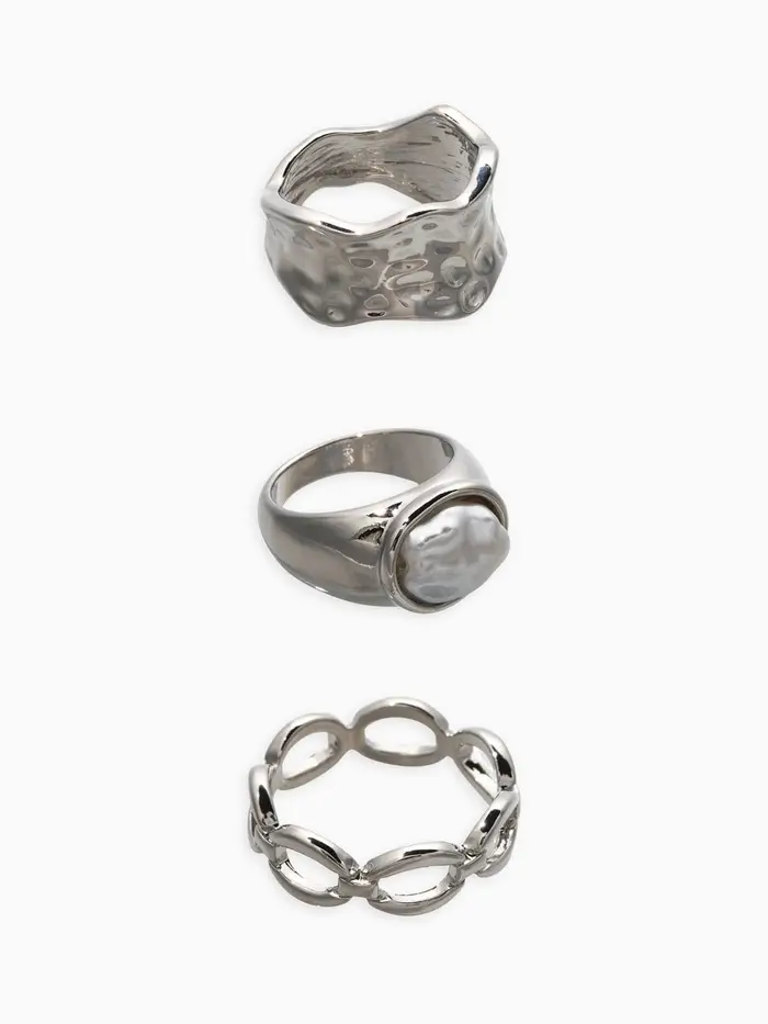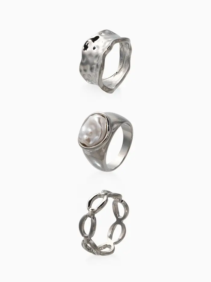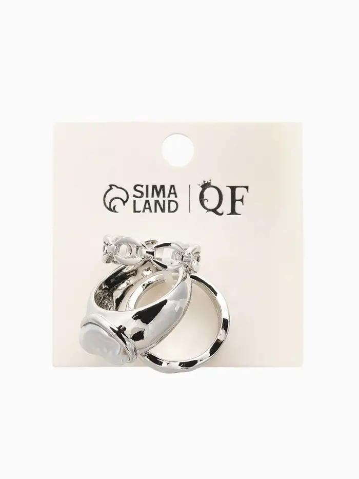 Набор колец 3 шт "Новый стиль" жемчуг,цепь, размер МИКС, цвет белый в серебре