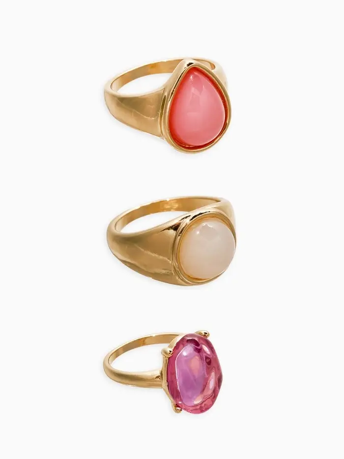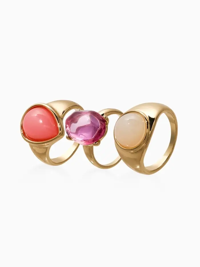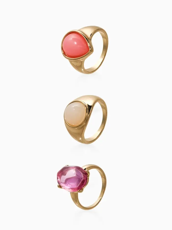Набор колец 3 шт "Новый стиль" кабашоны, размер МИКС, цвет розовый в золоте