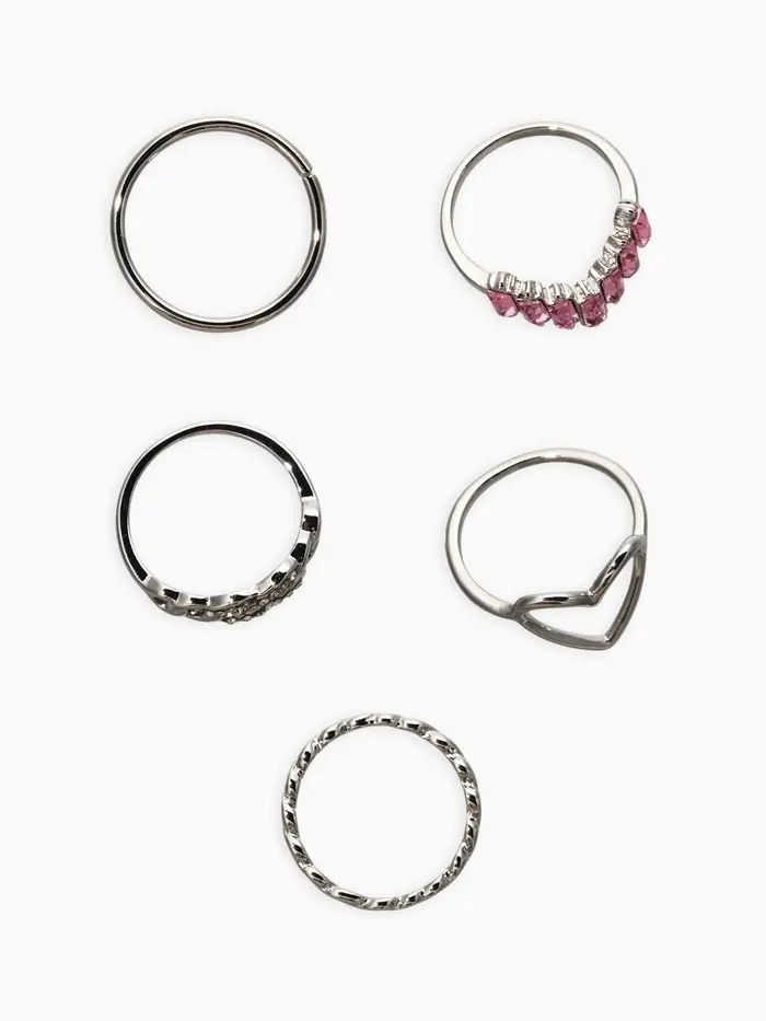 Набор колец 5 шт "Новый стиль" сердца,бесконечность, р-р МИКС, цвет бело-розовый в серебре 1093709