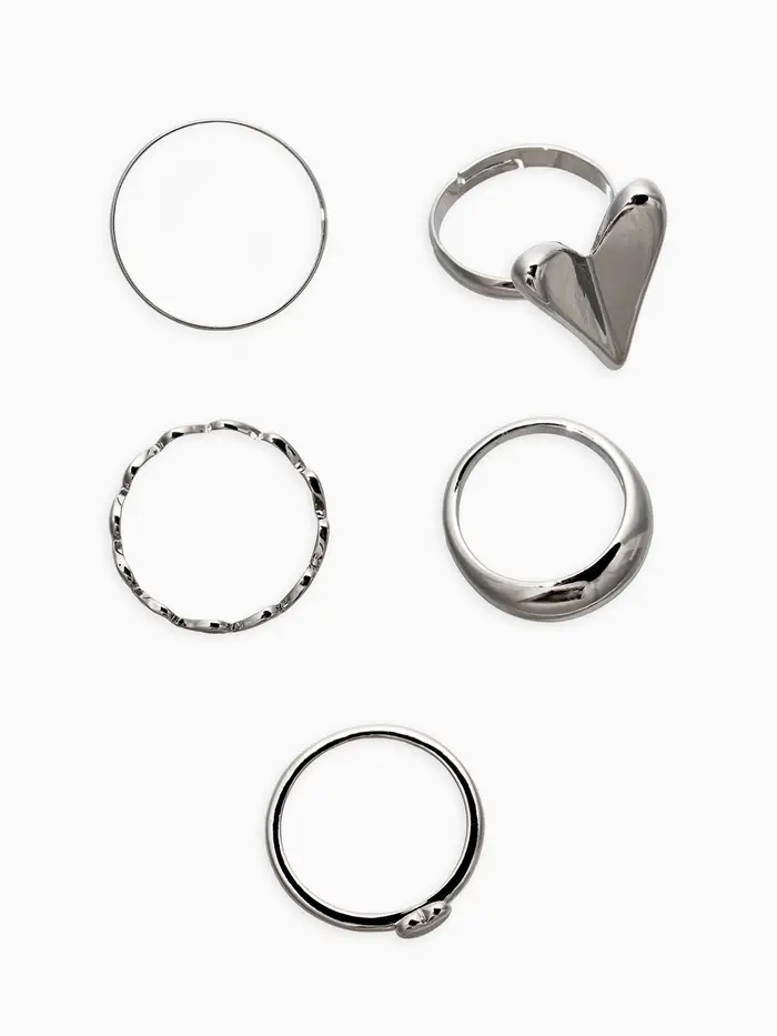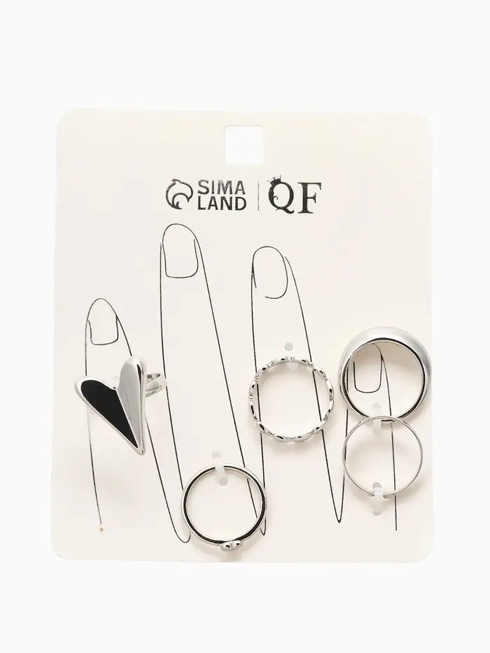 Набор колец 5 шт "Новый стиль" сердечки, размер МИКС, цвет серебро