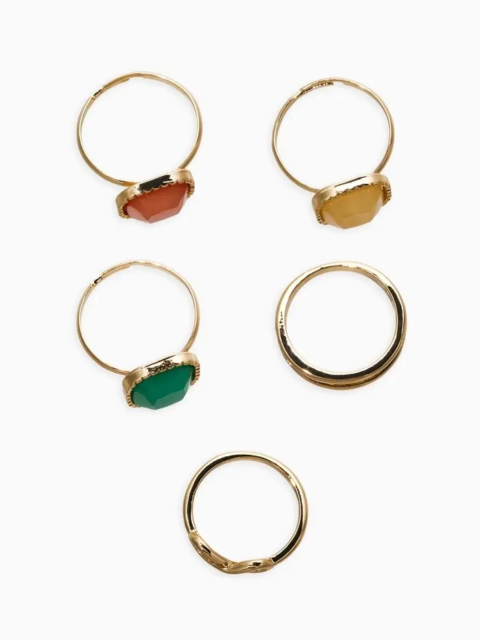 Набор колец 5 шт "Новый стиль" камни, размер МИКС, цветной в золоте