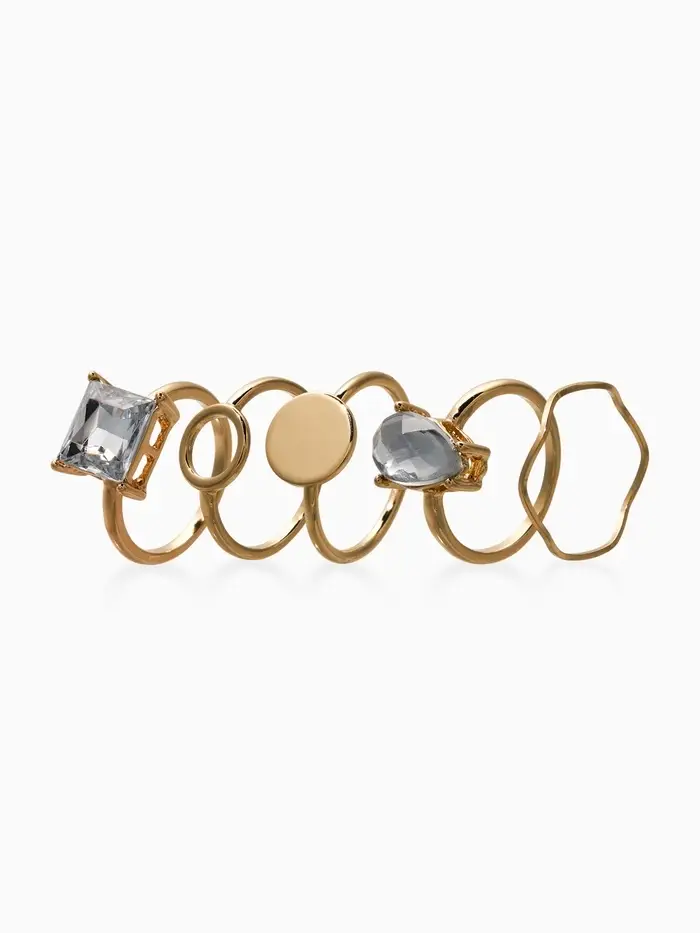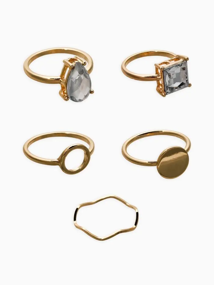 Набор колец 5 шт "Новый стиль" кристалл, размер МИКС, цвет белый в золоте