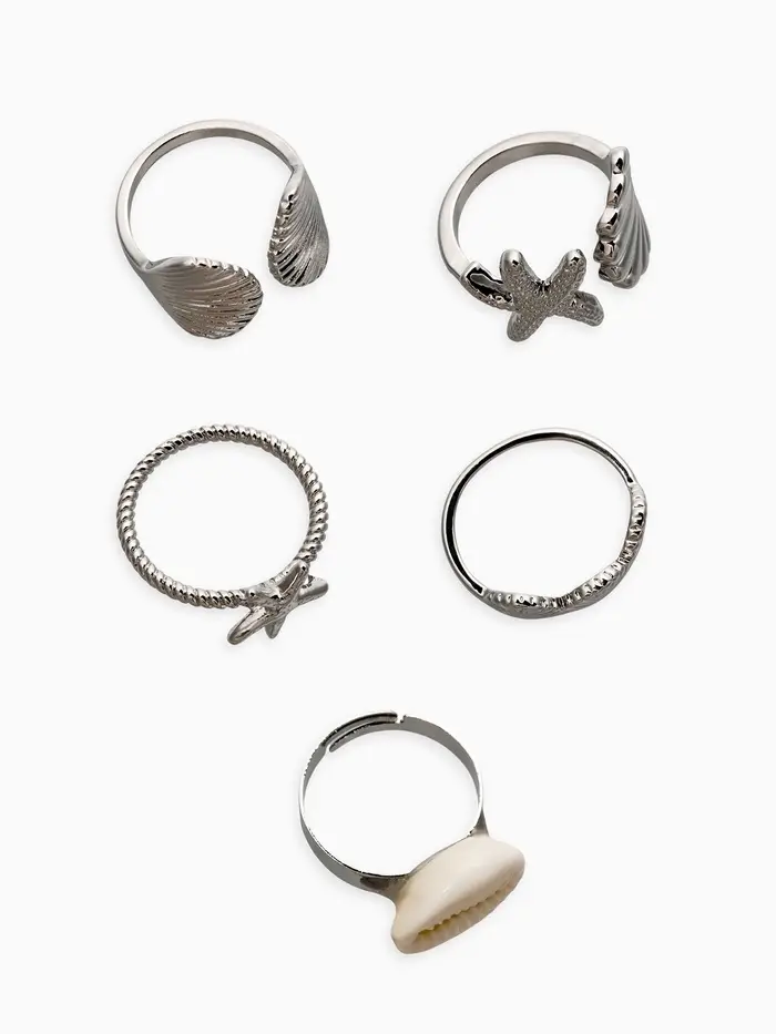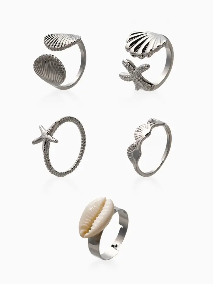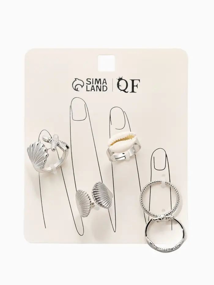 Набор колец 5 шт "Новый стиль" море, размер МИКС, цвет белый в серебре